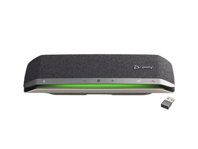 - Poly Sync 40 erbjuder professionellt ljud till alla olika mötesutrymmen. Parkoppla två enheter trådlöst för större mötesrum. Enheten är redo att användas med upp till 30 timmars samtalstid.