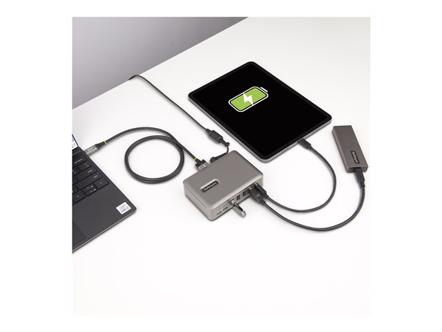 Lägg till tio USB 3.2 Gen 2 (10 Gbps)-portar (8x USB-A, 2x USB-C) till en USB-C-dator med denna 10-portars USB-C-hubb. USB-hubben är självförsörjande med en medföljande nätadapter. USB-hubben har överströmsskydd (OCP). OCP hjälper till att förhindra att kringutrustning drar för mycket ström, att USB-enheter slutar fungera och att datorer stängs av oväntat. Stöd för Wake On USB gör att USB-kommunikation, från enheter som är anslutna till hubben, kan ta datorn ur standby-läge eller andra energispar-/sömnlägen.